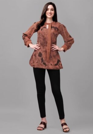 Gufrina Elegant Women’s Full Sleeve Tunic Top with Unique Print – Versatile and Stylish top/Blouse (Brown L)