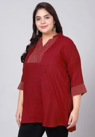 Indietoga Women’s Plus Size Maroon Embroidered Casual Cotton Linen Tunic (6XL)