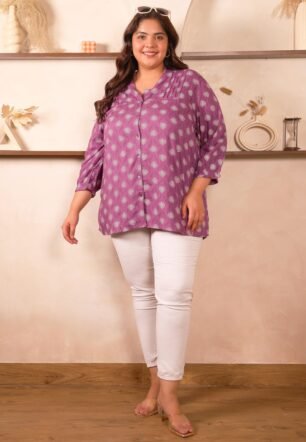 Indietoga Women’s Purple Motif Print Rayon Longline Tunic Top (PS10001603_Purple Printed_6XL)