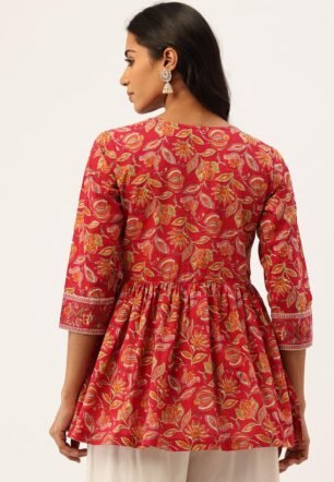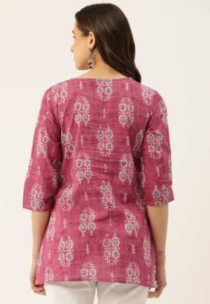 feranoid Women’s Cotton 3/4 Sleeve Round Neck Vcut Regular Fit Western Top Magenta Kurta, Large