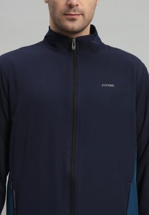 FITINC Contrast Panel Sports Track Jacket for Men – Navy Blue (Large)