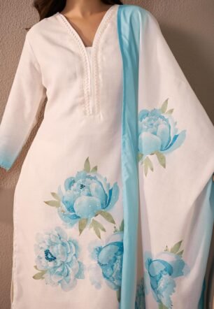 INDO ERA Women’s Straight Linen Floral Print with Sequines Work Kurta Pant with Dupatta Set (Off White_IEOUT9826_Medium)