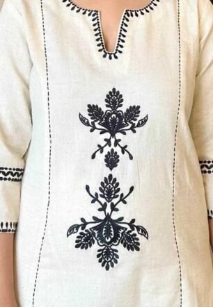 KALAKRITI VASTRA Women’s Cotton Embroidered Straight Kurta with Palazzo (White-XXL)