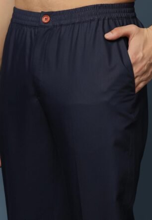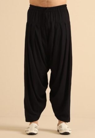 KISAH Men’s Kurta Patiyala Set, Black Cotton Blend, Embroidered Regular Fit Mandarin Collar Long Sleeves (42)