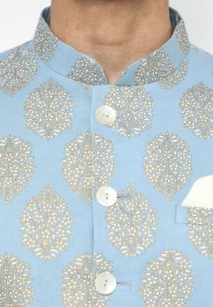 KISAH Sherwani for Men Wedding – Printed Indo Western Sherwani with Churidar | Designer Ethnic Outfit for Groom & Festivals, Blue, 44