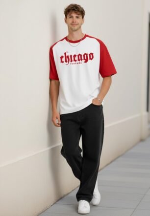 LEOTUDE Men’s Oversized Cotton Blend Printed T-Shirt (FS33_White_Chicago_P_White_S)