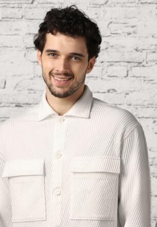 NOBERO Men’s Self Design Relaxed Fit Polyester Standard Length Jacket (1M-TWJK-R0003_White Medium