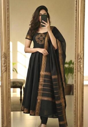 queens world Anarkali Suit Set with Embroidered Yoke, Dupatta and Churidar, Traditional Indian Ethnic Wear (IN, Alpha, 3XL, Regular, Standard, Black)
