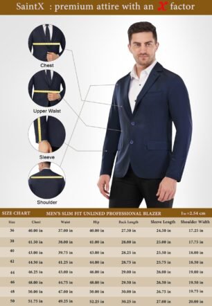 SaintX Men’s Premium Formal Blazer || Stretchable Triple Blend Fabric || Slim Fit || Fully Lined || Versatile Stylish Coat for Men || Professional Jacket || All Purpose