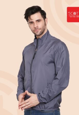 SCOTT INTERNATIONAL Men’s Dark Grey Polyester Idry Standard Length Jacket|Breathable, Water-Repellent, Foldable, Lightweight, Casual Sporty Coat, S