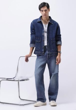 Urbano Fashion Men’s Blue Relaxed Fit Full Sleeve Utility Denim Jacket (jakt-denimtwlutfl-mblue-xl)