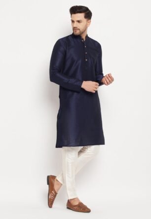VASTRAMAY Men’s Cotton Silk Blend Kurta-New Navy Blue