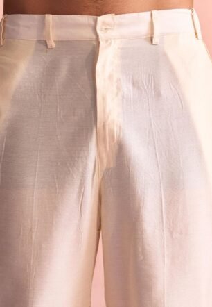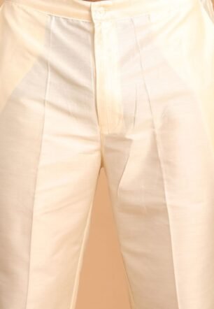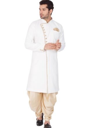 VASTRAMAY Men’S Cream Georgette Sherwani Set | Wedding & Festive Ethnic Wear | Ideal For Traditional, Haldi, Sangeet & Reception Functions (VSHRMIW237CRnPANT002CR_36)