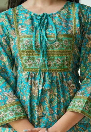 Yash Gallery Women’s Cotton Blend Bandhani Straight Regular Fit Short Kurta Tops for Women (XXX-Large, Blue)
