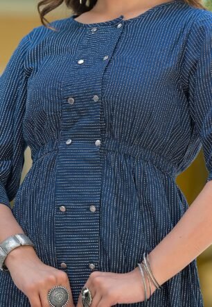 Yash Gallery Women’s Kantha Cotton Stripe Printed Straight Tunic for Women (1057YKBLUE_Blue_X-Large)