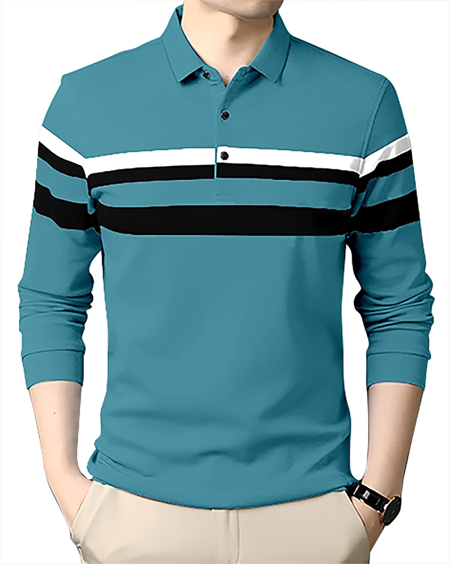 AUSK Men’s Polo T-Shirt Full Sleeves Regular Fit Color-TealSize- Medium