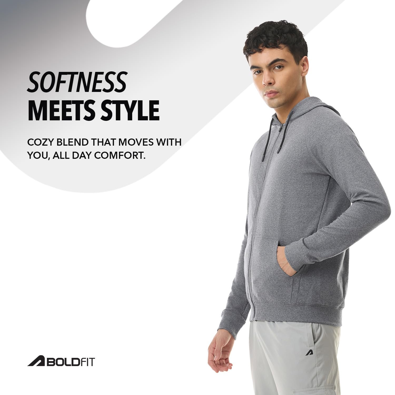 Boldfit Hoodies for Men Full Zipper Jacket for Men & Boys Fleece Hoodie for Man Winter Jackets Thermal Insulation Mens Jacket Zipper WinterWear Hoodies for Boys Winter Grey L