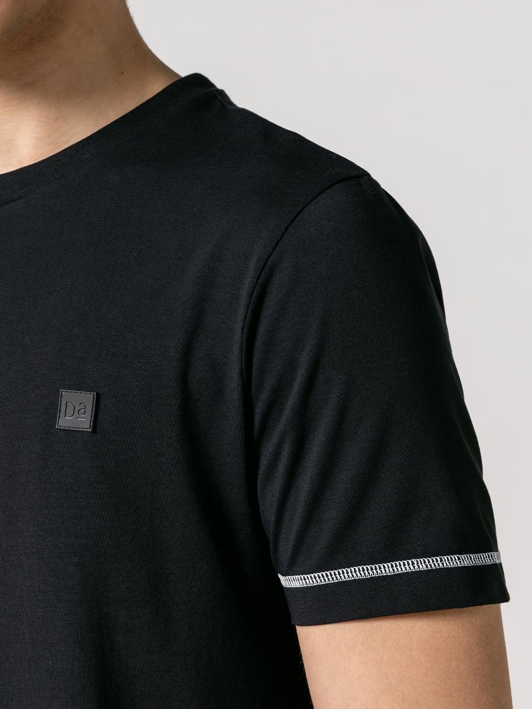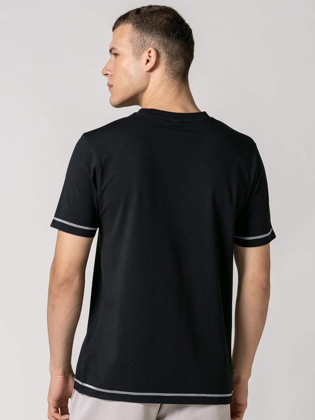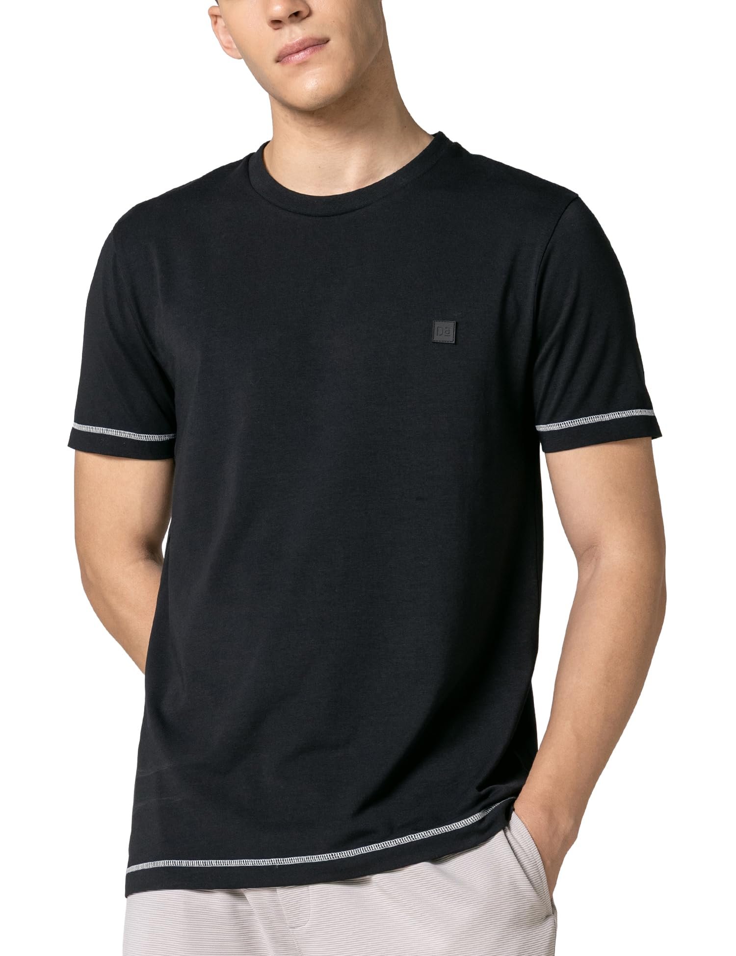 DAMENSCH Men’s Fluid Casual Solid Contrast Stitch Elemental Tees- Jet Black- X-Large