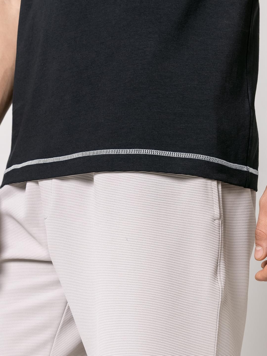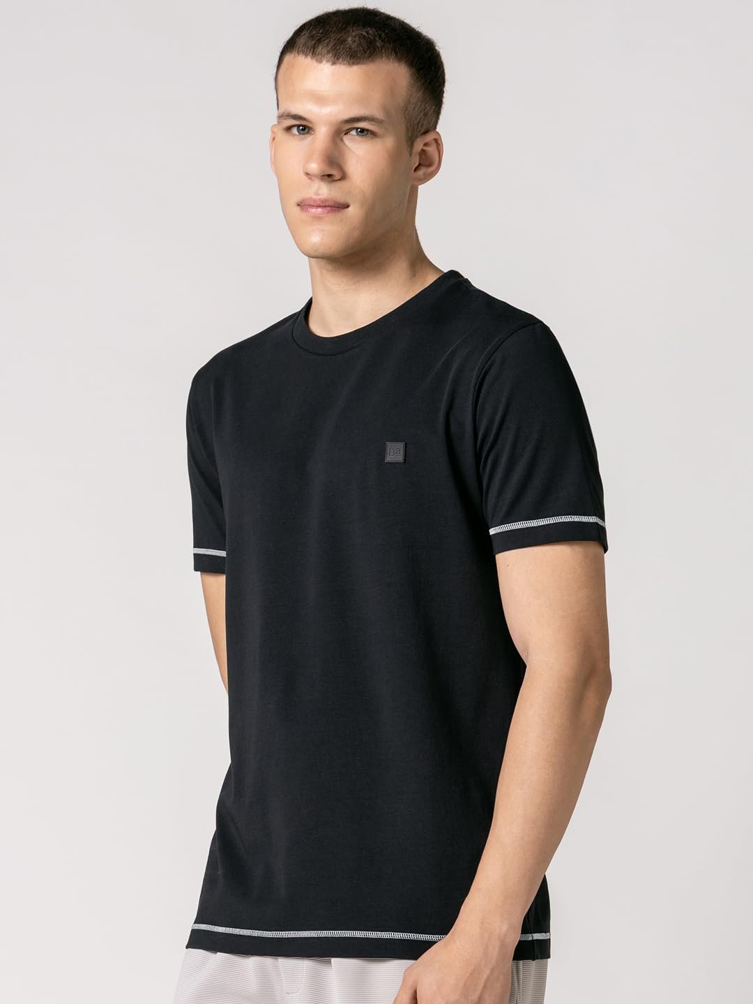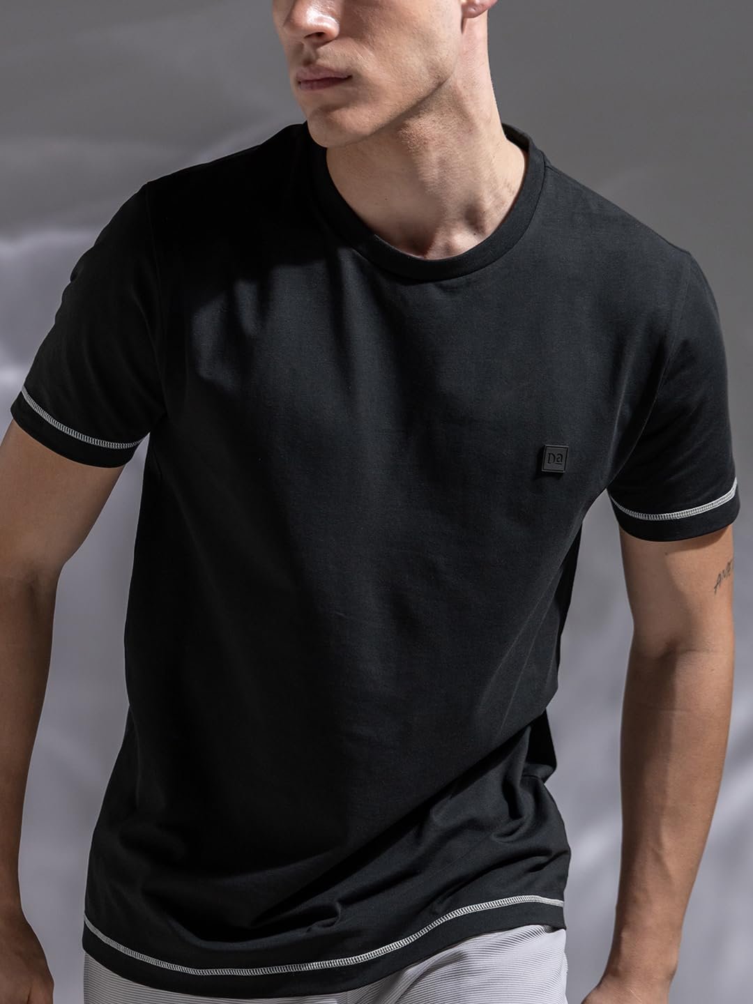 DAMENSCH Men’s Fluid Casual Solid Contrast Stitch Elemental Tees- Jet Black- X-Large
