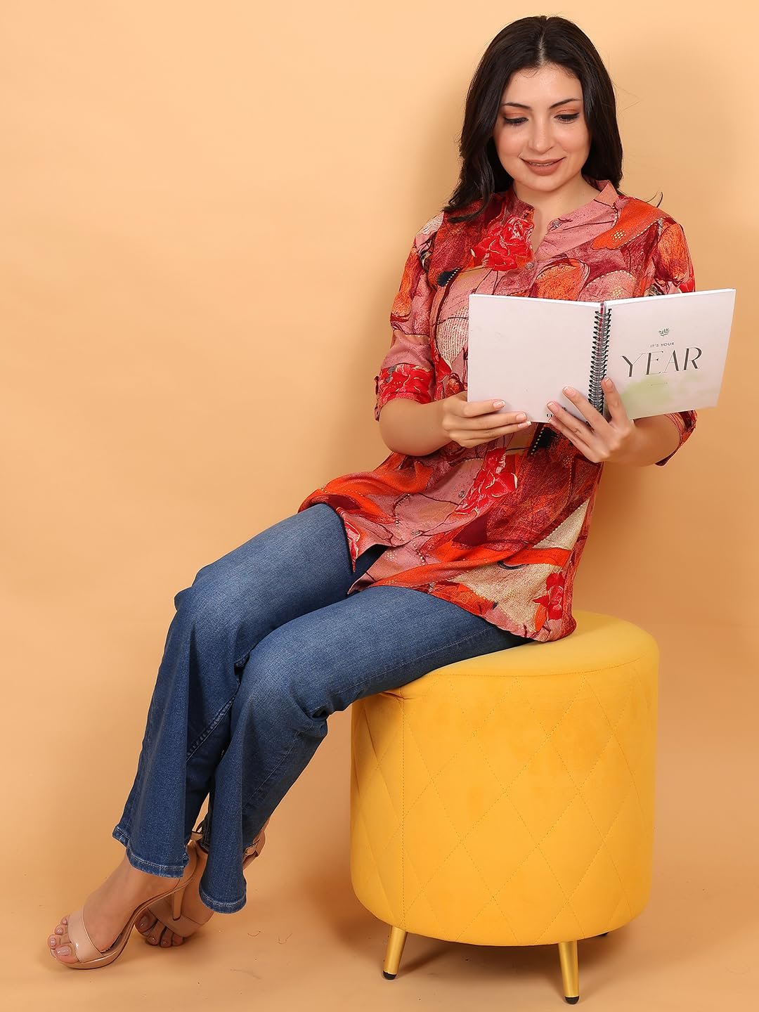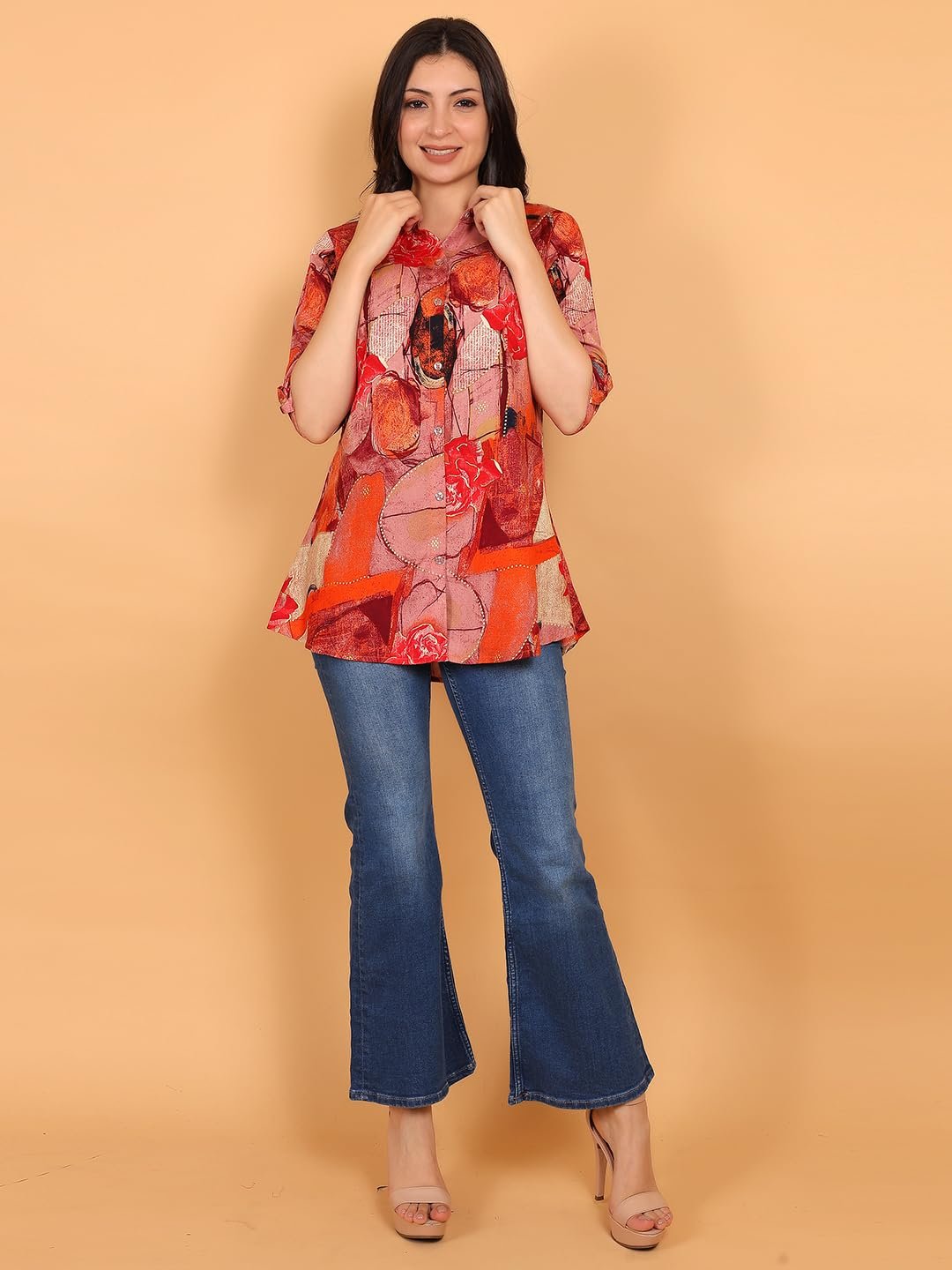 <p><b>Brand:</b> FIMS - Fashion is my style</p><p><b>Color:</b> Orange</p><p><b>Features:</b> <ul><li>Fabric: Soft and breathable rayon, Design: Ethnic and western style – perfect for versatile styling.</li><li>Pattern: Abstract Printed, Neck Type: V Neck with mandarin collar || Sleeve Length: 3/4 Roll-Up Sleeves || Package Includes: 1 Kurti</li><li>Pairs well with jeans, skirts, palazzos, or leggings. Ideal for casual wear, office, college, or day outings.</li><li>Perfect for Summer Wear: Lightweight, breathable, and stylish—this kurti is ideal for summer outings, daily office wear, college, casual get-togethers, and everyday use.</li><li>Easy to maintain – machine and hand washable.</li></ul></p><p><b>Package Dimensions:</b> 18x270x170</p>