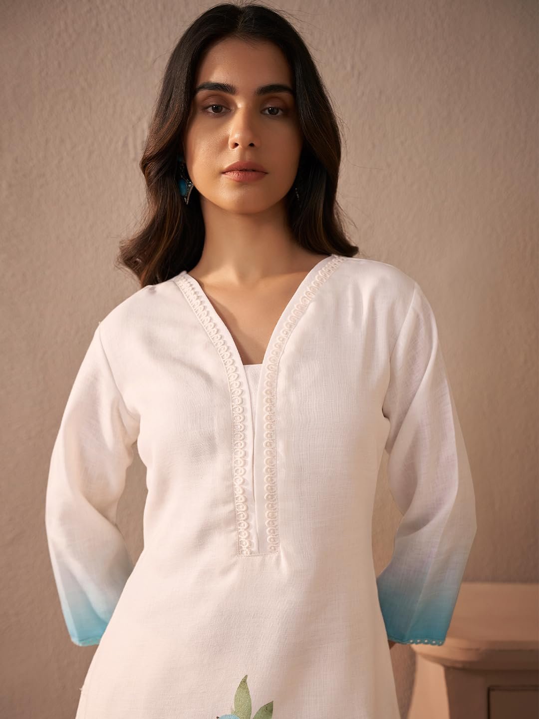 <p><b>Brand:</b> INDO ERA</p><p><b>Color:</b> Off White-1</p><p><b>Features:</b> <ul><li>Color : Off White || Top & Fabric : Linen || Dupatta Fabric : Cotton Blend</li><li>Pattern : Floral || Print Or Pattern Type : Floral Print with Sequines work || Neck Type : V-Neck</li><li>Top Length : 44.5in || Sleeve Length : 17in || Bottom Outseam Lengh : 36in || Inseam Lengh : 25in</li><li>Package Contains : Kurta & Pant With Dupatta Set</li><li>Note : Product color might slightly vary due to photographic lighting sources or your monitor settings.</li></ul></p><p><b>Package Dimensions:</b> 56x341x560</p><p><b>Details:</b> DescriptionStep into the timeless elegance of INDO ERA, where tradition and contemporary style intertwine seamlessly. Our meticulously crafted Kurta Sets, Kurtas, Co-Ord Sets, and Ethnic Dresses redefine ethnic fashion, showcasing intricate embroidery, delicate embellishments, and luxurious fabrics that epitomize Indian heritage with a modern twist. From classic designs to avant-garde silhouettes, each piece exudes grace and sophistication, offering versatility for every occasion. Embrace the essence of INDO ERA and elevate your wardrobe with our collection, where every garment tells a story of cultural richness and sartorial excellence.</p>