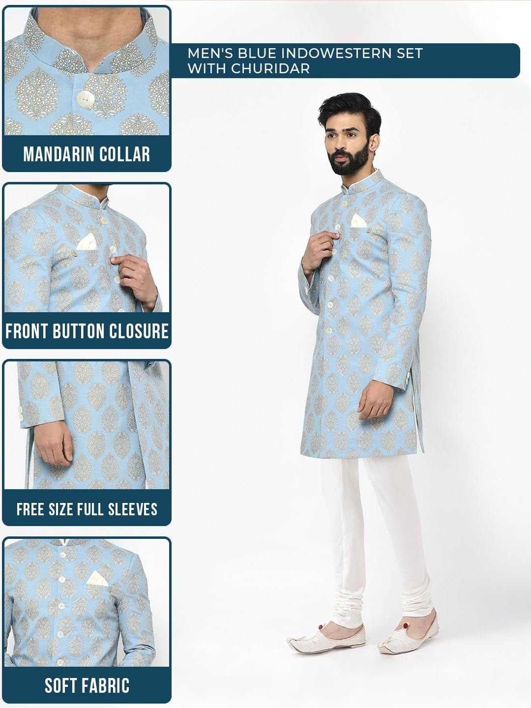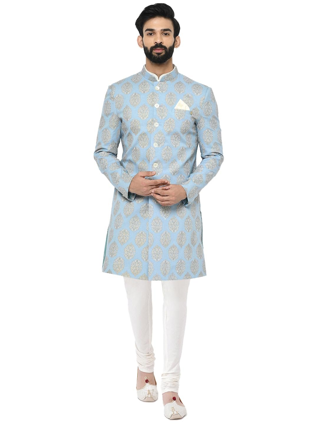 KISAH Sherwani for Men Wedding – Printed Indo Western Sherwani with Churidar | Designer Ethnic Outfit for Groom & Festivals, Blue, 44