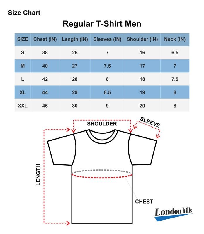 <p><b>Brand:</b> London Hills</p><p><b>Color:</b> Black_Never Fail</p><p><b>Features:</b> <ul><li>Fabric: Cotton; Style: Regular<br></li><li>Neck Style: Round Neck<br></li><li>Pattern: Printed<br></li><li>Sleeve Type: Half Sleeve<br></li><li>Pattern Type: Block Print; Occasion Type: Casual</li></ul></p><p><b>Package Dimensions:</b> 28x253x160</p>