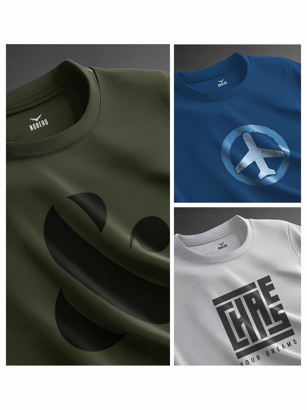 <p><b>Brand:</b> NOBERO</p><p><b>Color:</b> Marine / Olive Green / Grey Melange</p><p><b>Features:</b> <ul><li>✅100% Cotton Material: Nobero’s Men’s Printed t-shirts are made entirely from cotton, offering a soft, breathable feel against your skin for maximum comfort and ease of wear.</li><li>✅Classic Fit Men's Printed T-Shirt: Elevate your wardrobe with our premium Regular classic fit Printed t-shirts for men, crafted from 100% combed cotton for unbeatable softness and durability.</li><li>✅Round Neck & Stylish Short Sleeves: Our Round neck T-shirts half sleeves serve as a versatile feature, perfect for cooler days or adding an edge to your summer evening attire or suitable for any occasion.</li><li>✅Lightweight & Breathable: Stay cool and comfortable all day with our lightweight and breathable fabric Printed Tshirts , ideal for year-round wear.</li><li>✅Stylish Half Sleeves: Stay cool and casual year-round with our half sleeves Tshirts for men, providing the perfect balance between coverage and breathability for all-day comfort.</li></ul></p><p><b>Package Dimensions:</b> 50x297x580</p><p><b>Details:</b> DescriptionIntroducing the Nobero Men's Regular Fit T-Shirt – where simplicity meets style. This t-shirt offers a classic regular fit, providing comfort and a timeless look. Featuring short sleeves with a standard cut, it ensures ease of movement and a polished appearance. Crafted from 100% premium cotton, this t-shirt guarantees breathability and durability for everyday wear. The standout feature of this t-shirt is its minimalist print positioned on the chest, adding a touch of character to your outfit. Perfect for those who appreciate subtle yet stylish designs, this t-shirt seamlessly combines quality and aesthetics. Elevate your casual wardrobe with this versatile piece from Nobero.</p>