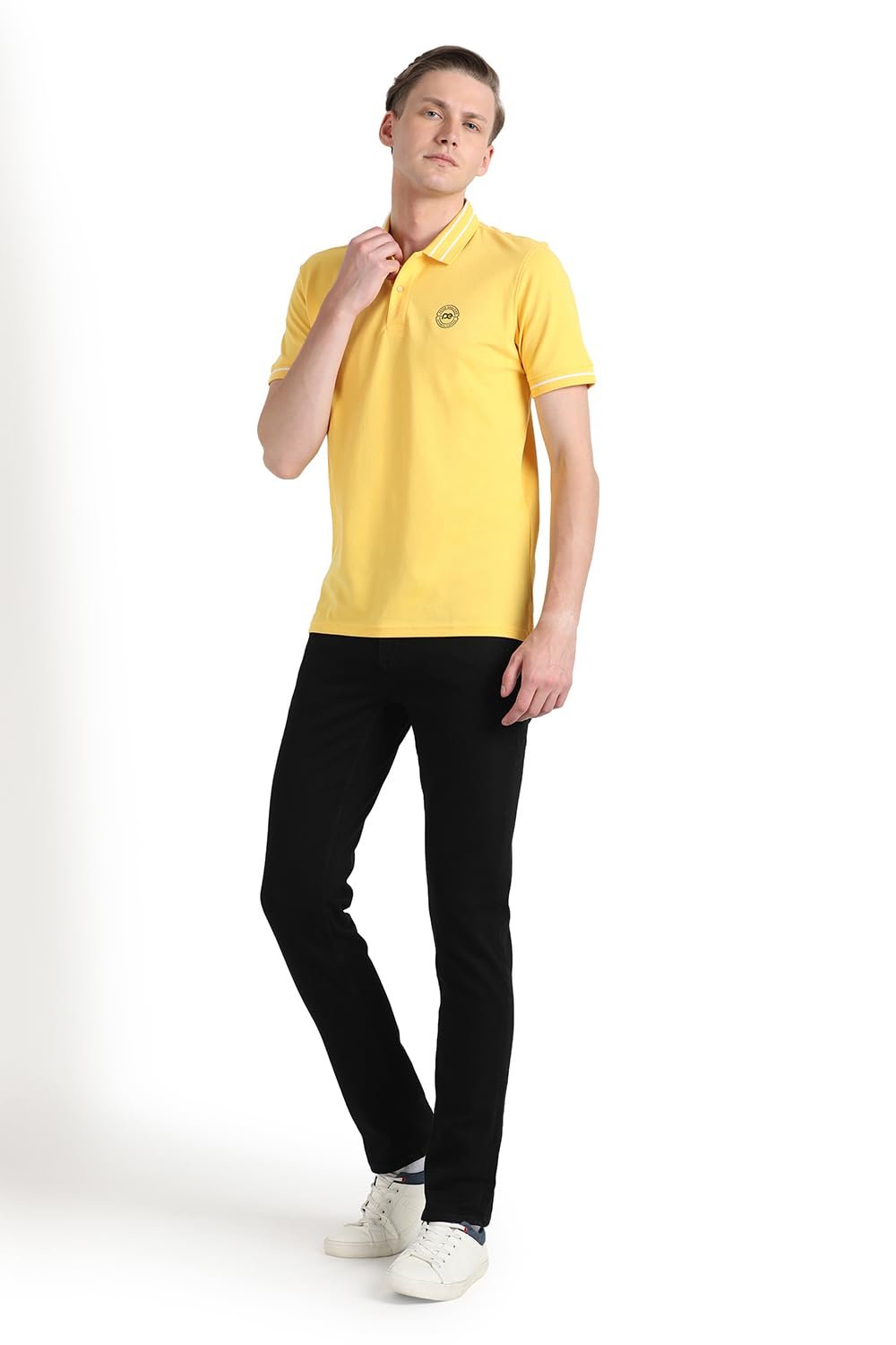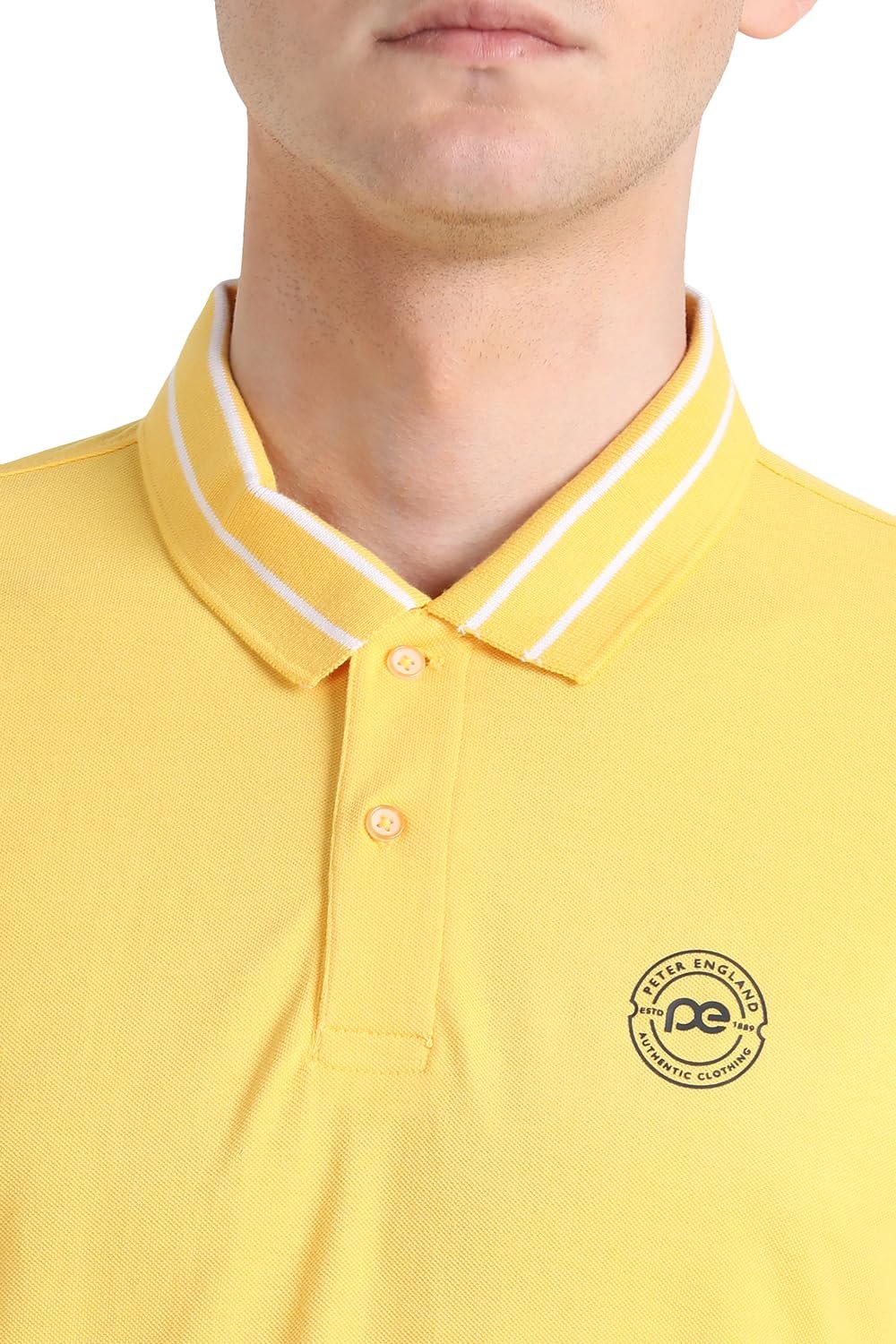 Peter England Men’s Regular Fit Branded Insignia Half Sleeve Polo T-Shirt | Cotton Rich | Premium Pique Weave, Medium, Yellow