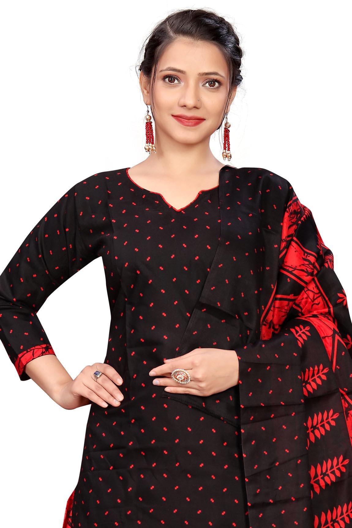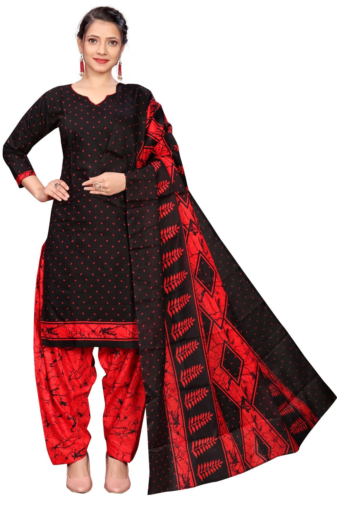 <p><b>Brand:</b> Rajnandini</p><p><b>Color:</b> Black</p><p><b>Features:</b> <ul><li>Fabric detail: Cotton Blended | Readymade Stitched Patiala Salwar suit Set with</li><li>Comfortable & Easy to Care | Suitable For Daily wear, Work Wear & Casual wear</li><li>Readymade Stitched material: Can be Choose from Normal Size (S, M, L, XL, 2XL) & Plus Size (3XL, 4XL, 5XL, 6XL)</li><li>Closure Type: Drawstring | All Over Printed Design</li><li>Set Contains: Stitched Cotton Top, Stitched Cotton Patiala Salwar and Cotton Dupatta</li></ul></p><p><b>Package Dimensions:</b> 38x284x430</p>