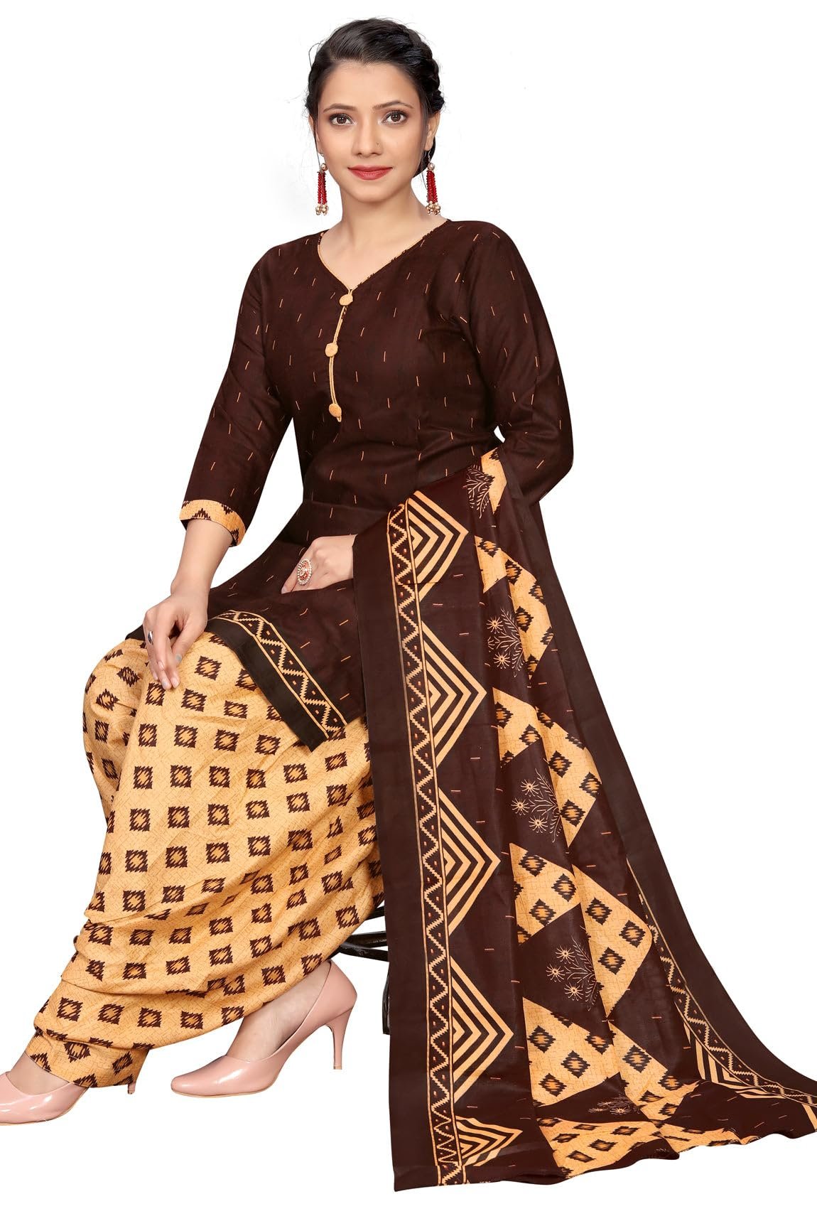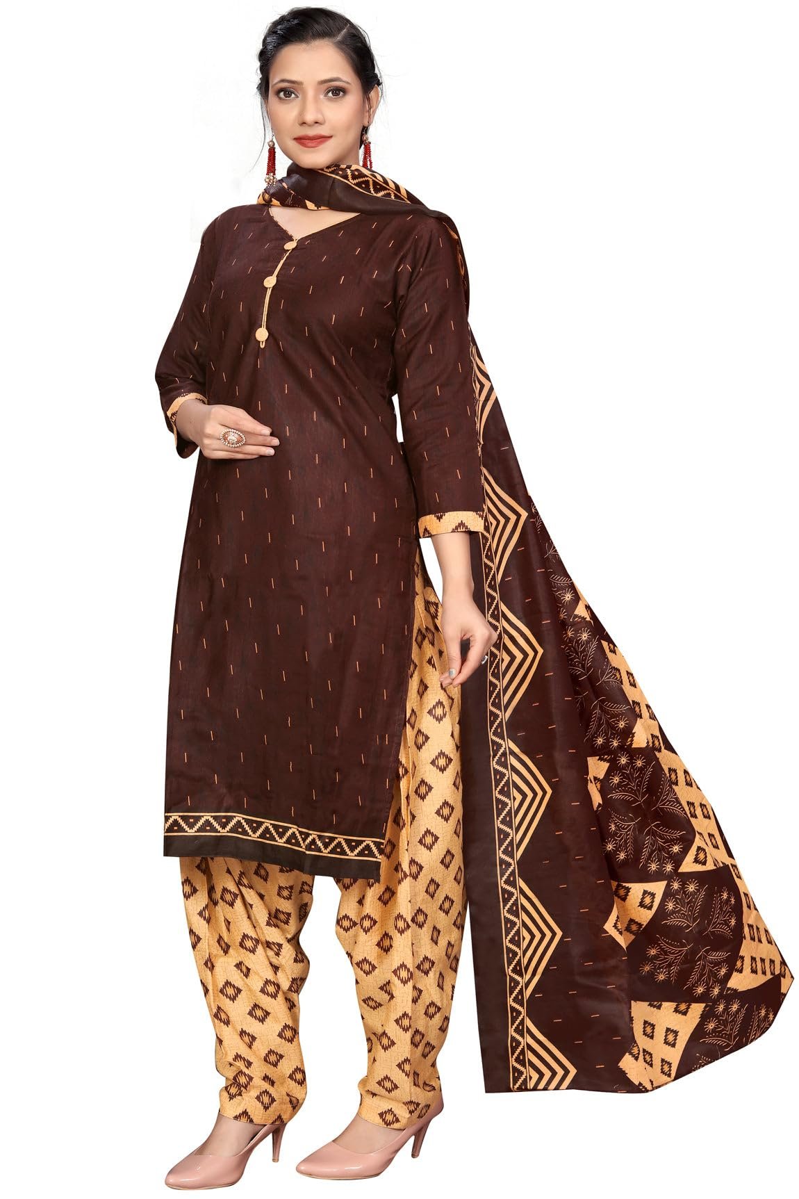 Rajnandini Brown Cotton Printed Readymade Patiala Salwar Suit (Ready to Wear-Vsrw4082-Xxl, Womens)