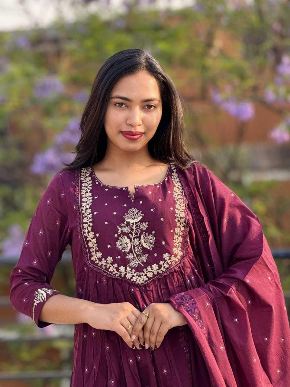 <p><b>Brand:</b> RIYA ATELIER BY RIYANSHI</p><p><b>Color:</b> Purple</p><p><b>Features:</b> <ul><li>Premium Cotton Fabric – Soft, breathable, and perfect for all-day wear.</li><li>Elegant Embroidery Work – Intricate detailing adds a rich, ethnic charm.</li><li>Anarkali Kurti Design – Flared silhouette that flatters all body types.</li><li>Perfect for All Occasions – Ideal for festive events, pujas, or casual gatherings.</li><li>Easy to Wash & Maintain – Colorfast and durable; machine or hand washable.</li></ul></p><p><b>Package Dimensions:</b> 0x0x0</p>