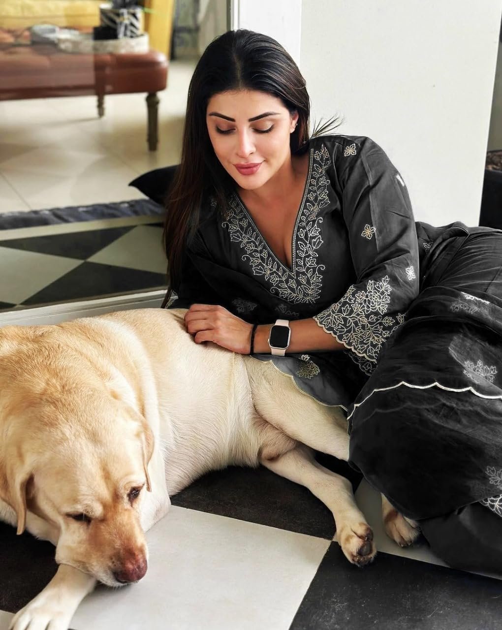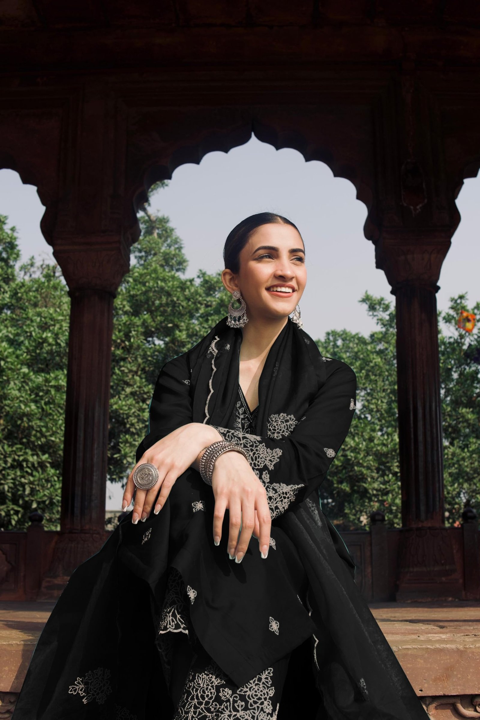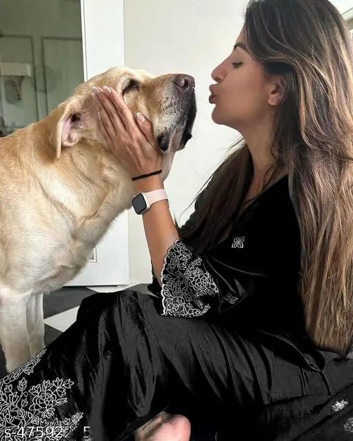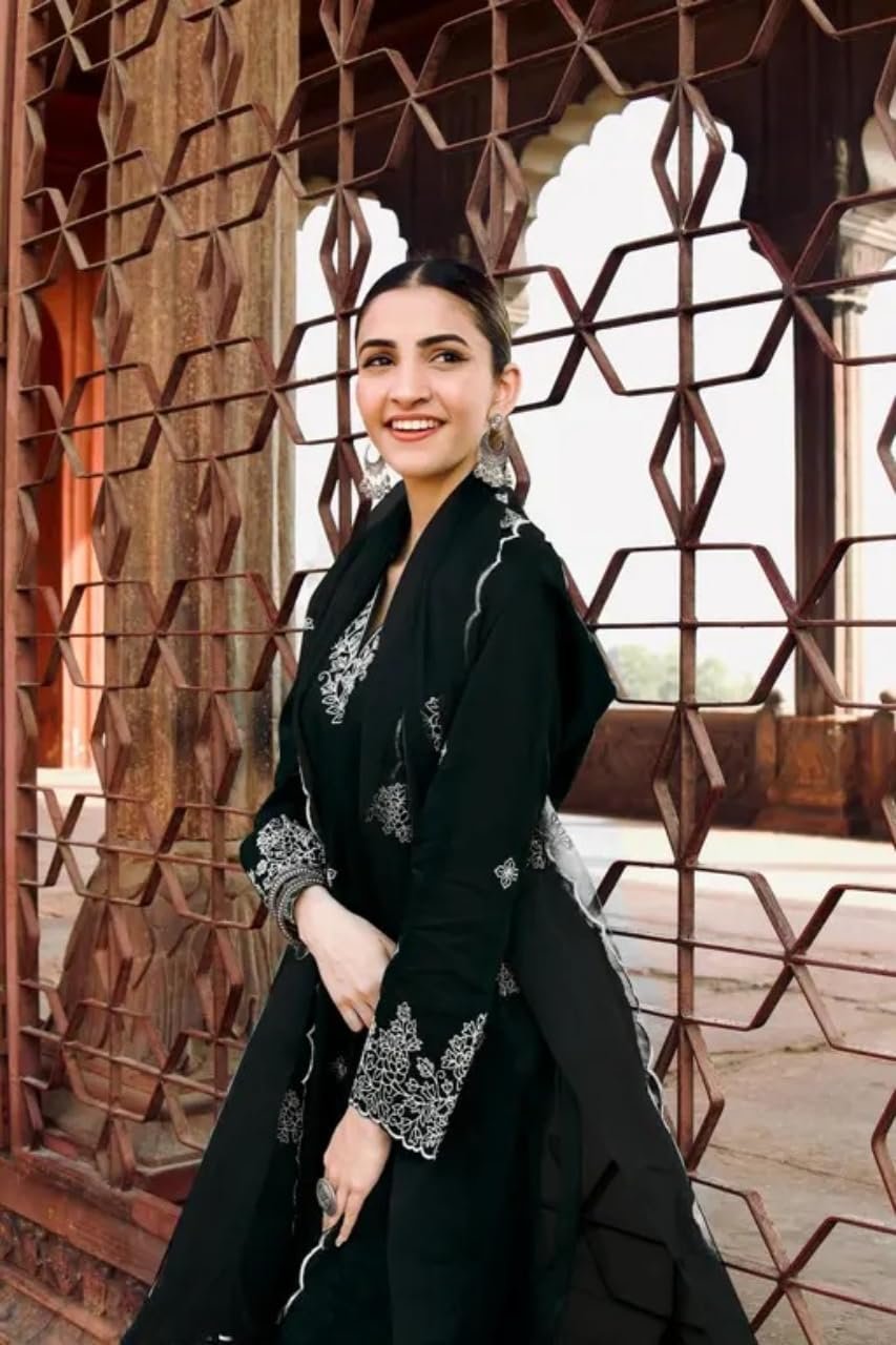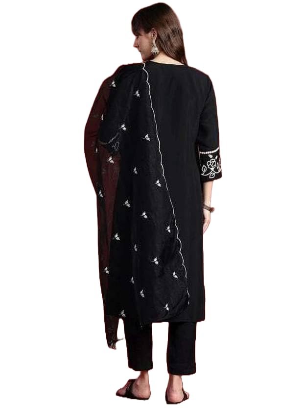 Royal Export Women’s Viscose Silk Floral Embroidered Straight Kurta Pant with Dupatta (RX60-Black-M)