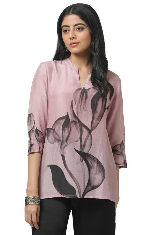 Soch Womens Onion Pink Muslin Floral Print Tunic
