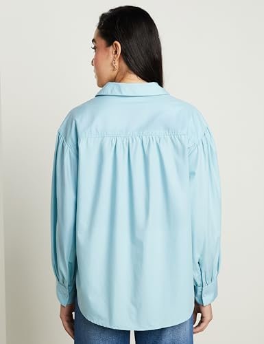 Symbol Premium Women’s Oversized Smart Casual Cotton Shirt (SBP-AW25-WTOP-534_Light Blue_4XL)