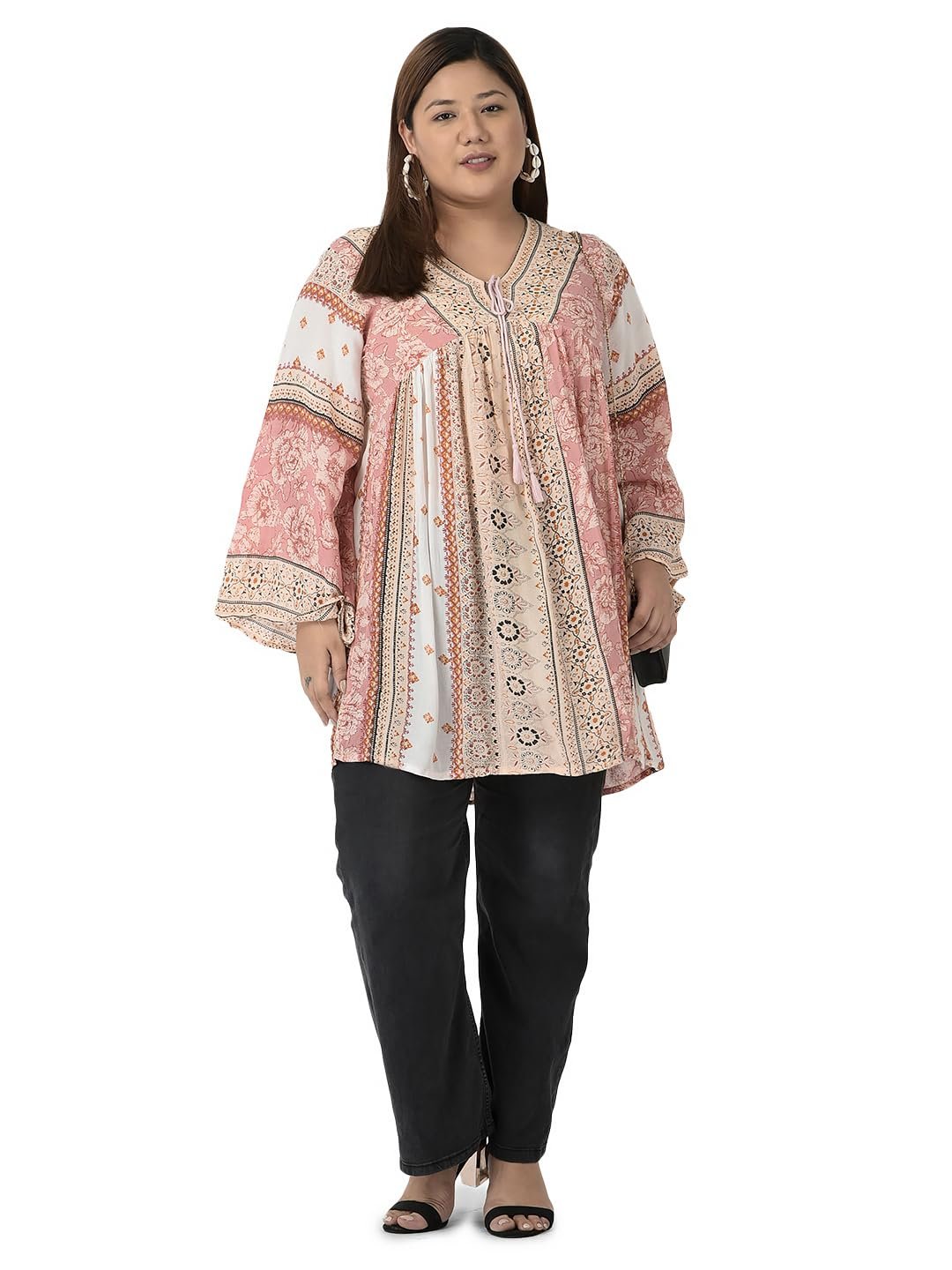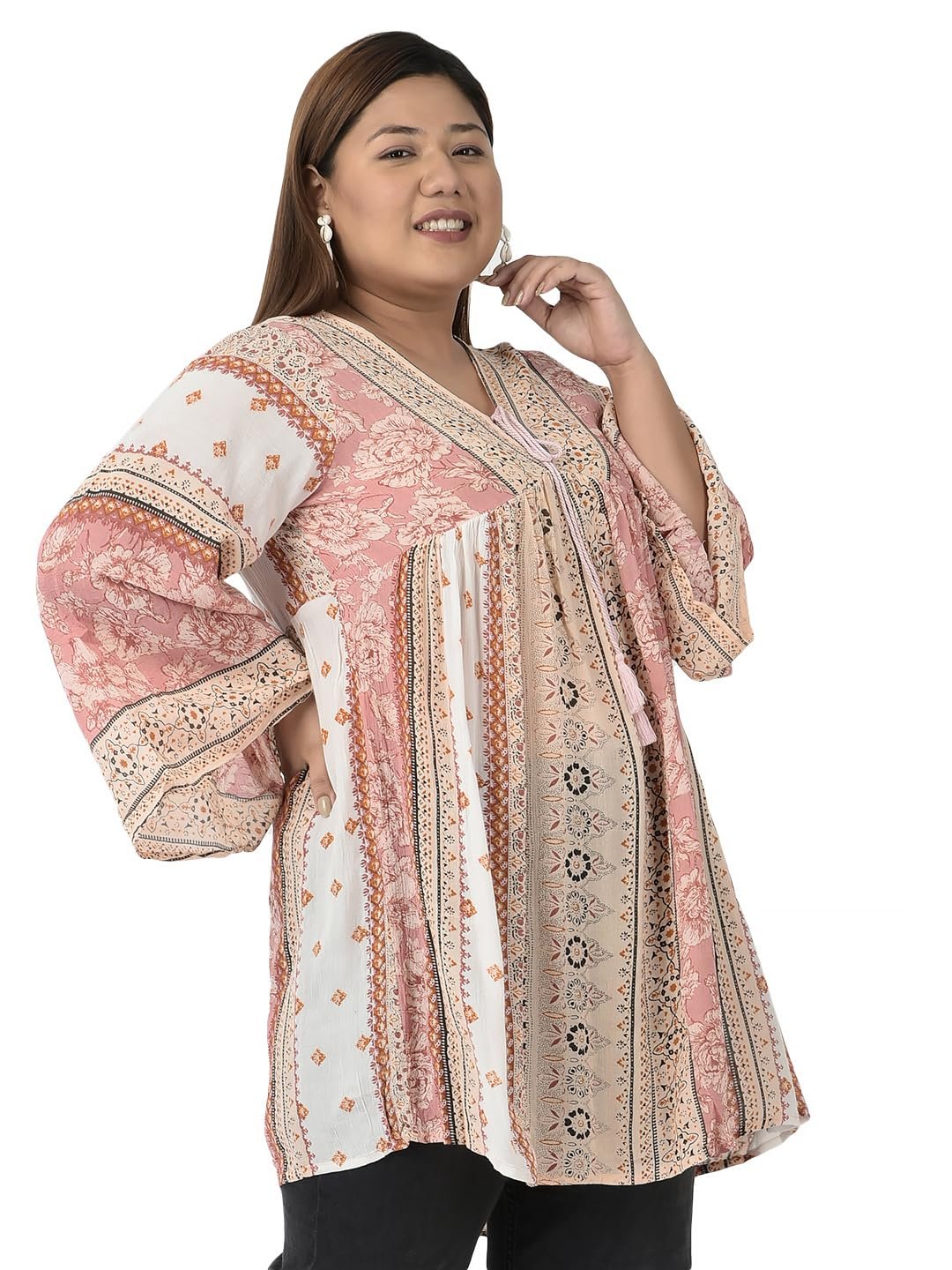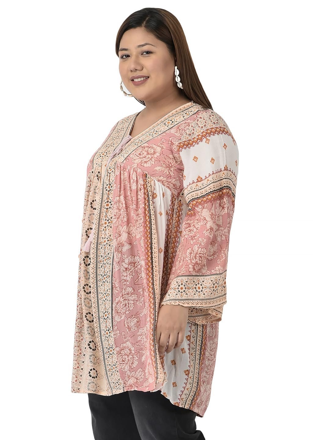 veldress21 Floral Printed Tunic Blouse Summer Fit and Flare Casual Stylish Longline Top for Women Plus Size Pink