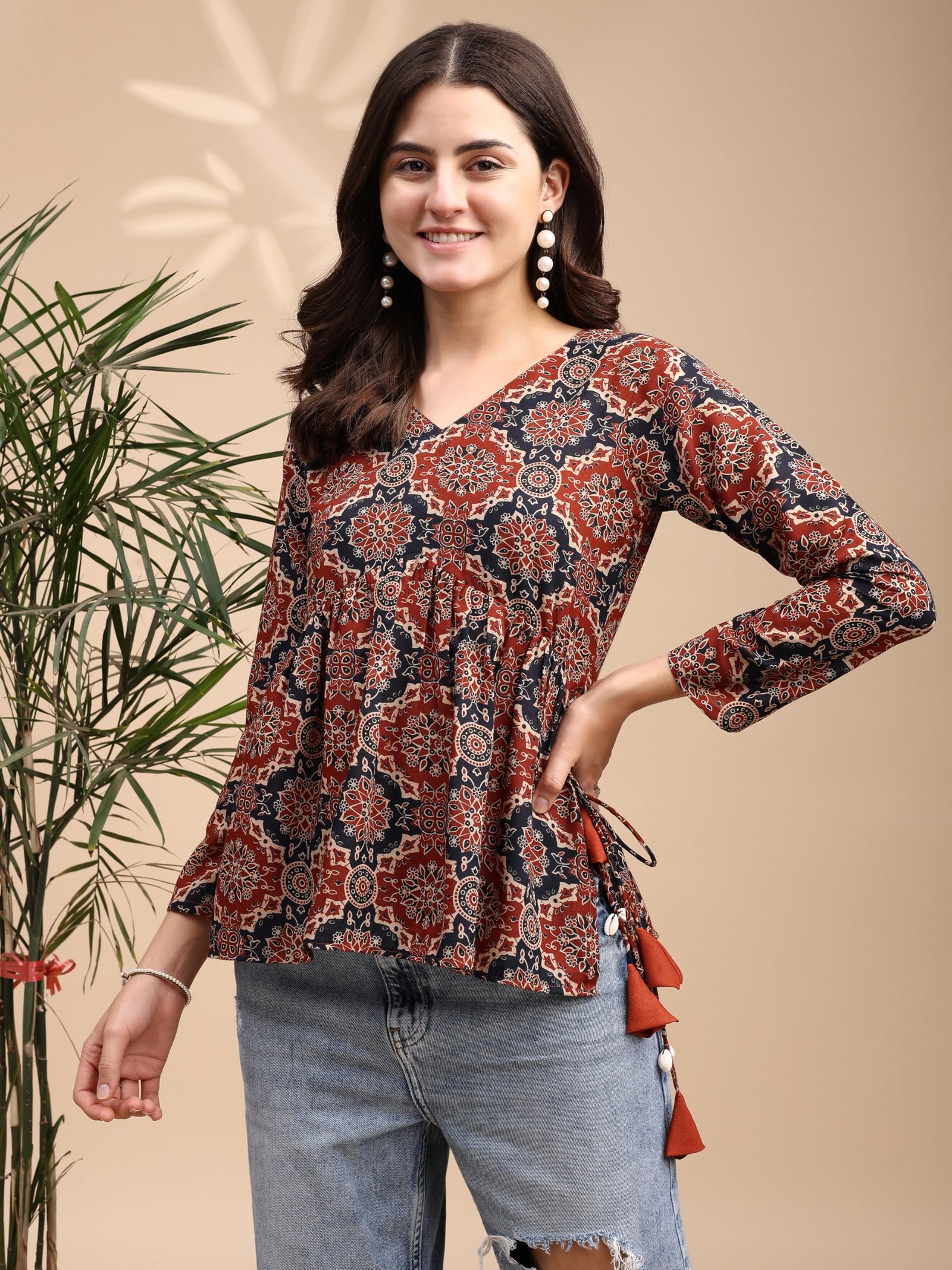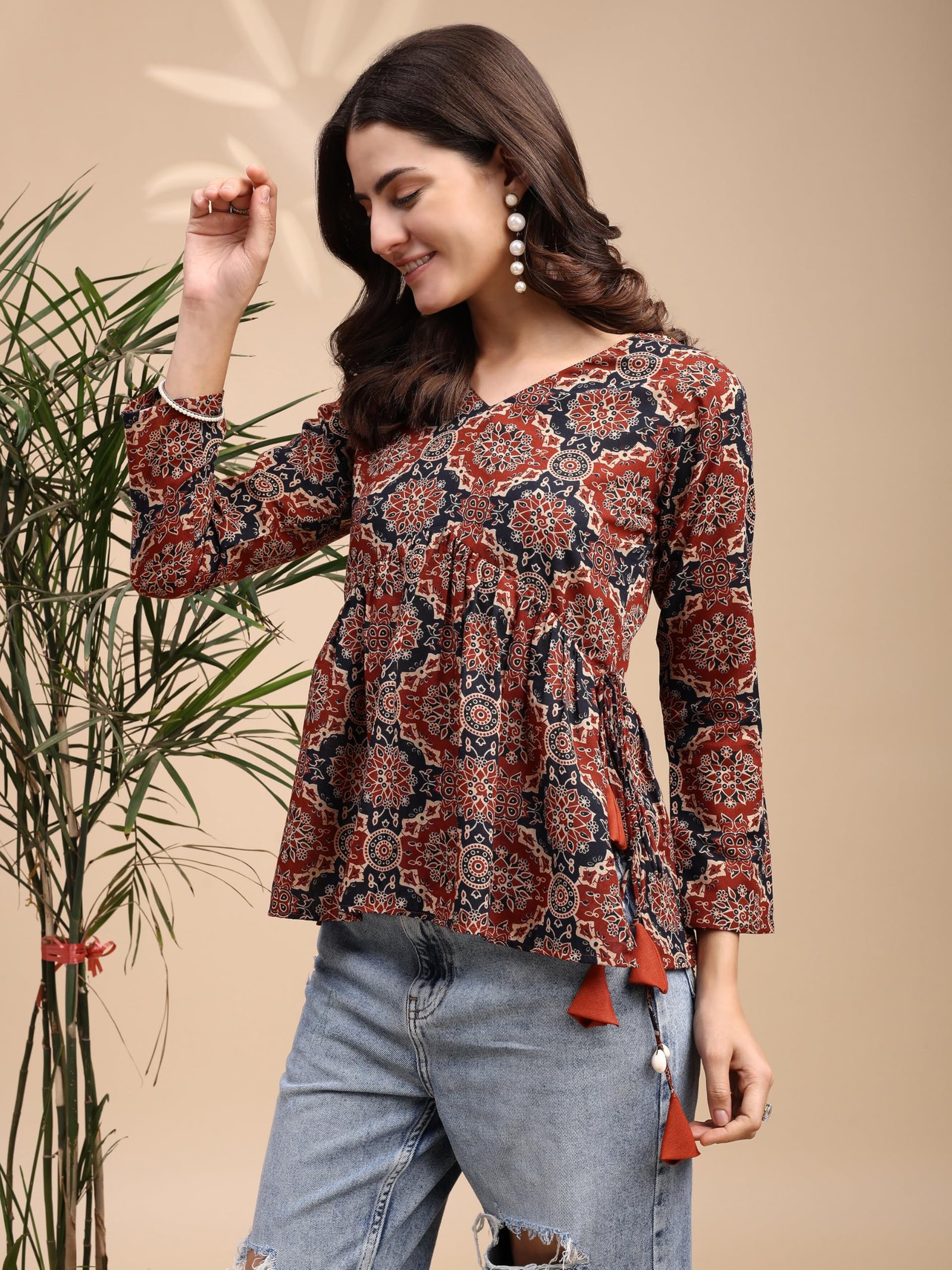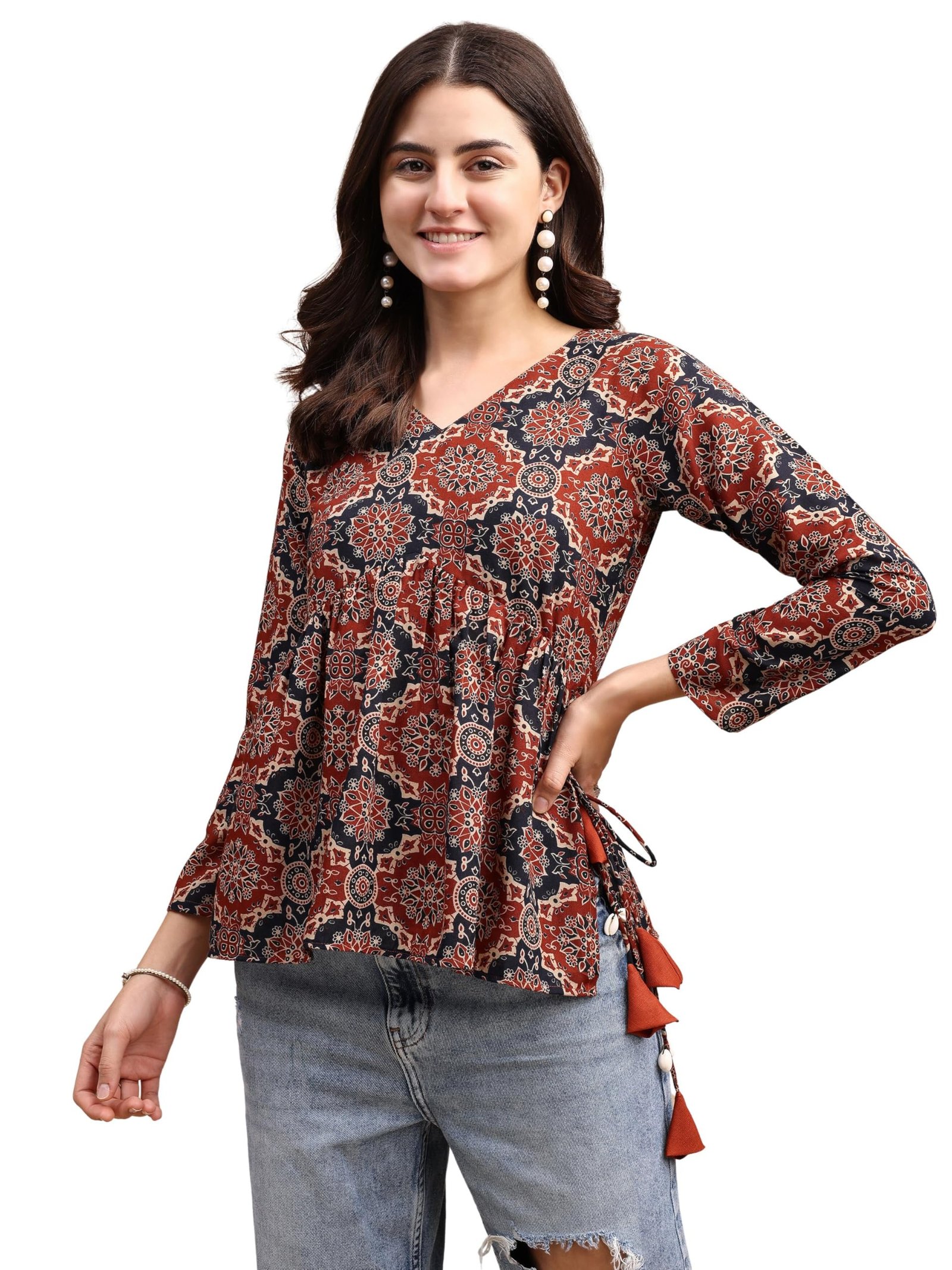 <p><b>Brand:</b> Youthnic</p><p><b>Color:</b> Rust</p><p><b>Features:</b> <ul><li>Kurta Fabric : Cotton Blend | Kurta Style : Alia Cut | Kurta Work : Ajrak Print | Kurta Color : Rust</li><li>Style: Alia Cut || Length : Hip Length|| Sleeves: Long Sleeves || Size Chart - 2XL || Across Shoulder( Inches ) - 16 || Bust - 42 || chest - 42 || Front length - 25 || waist - 39 || Hips - 48 || in,For More Please refer to the size Chart below.</li><li>This Supremely soft and comfortable Cotton Blend alia cut Top With Ajrak Print Pattern is perfect for all type of occasions</li><li>Ocassion : Daily wear , Casual Wear , Evening Wear , Office wear , Festival Wear</li><li>Disclaimer : Colour of the actual product may slightly vary due to different photographic lighting sources or your display color settings or screen type. ||Care Instructions: Hand Wash ||</li></ul></p><p><b>Package Dimensions:</b> 25x257x150</p>