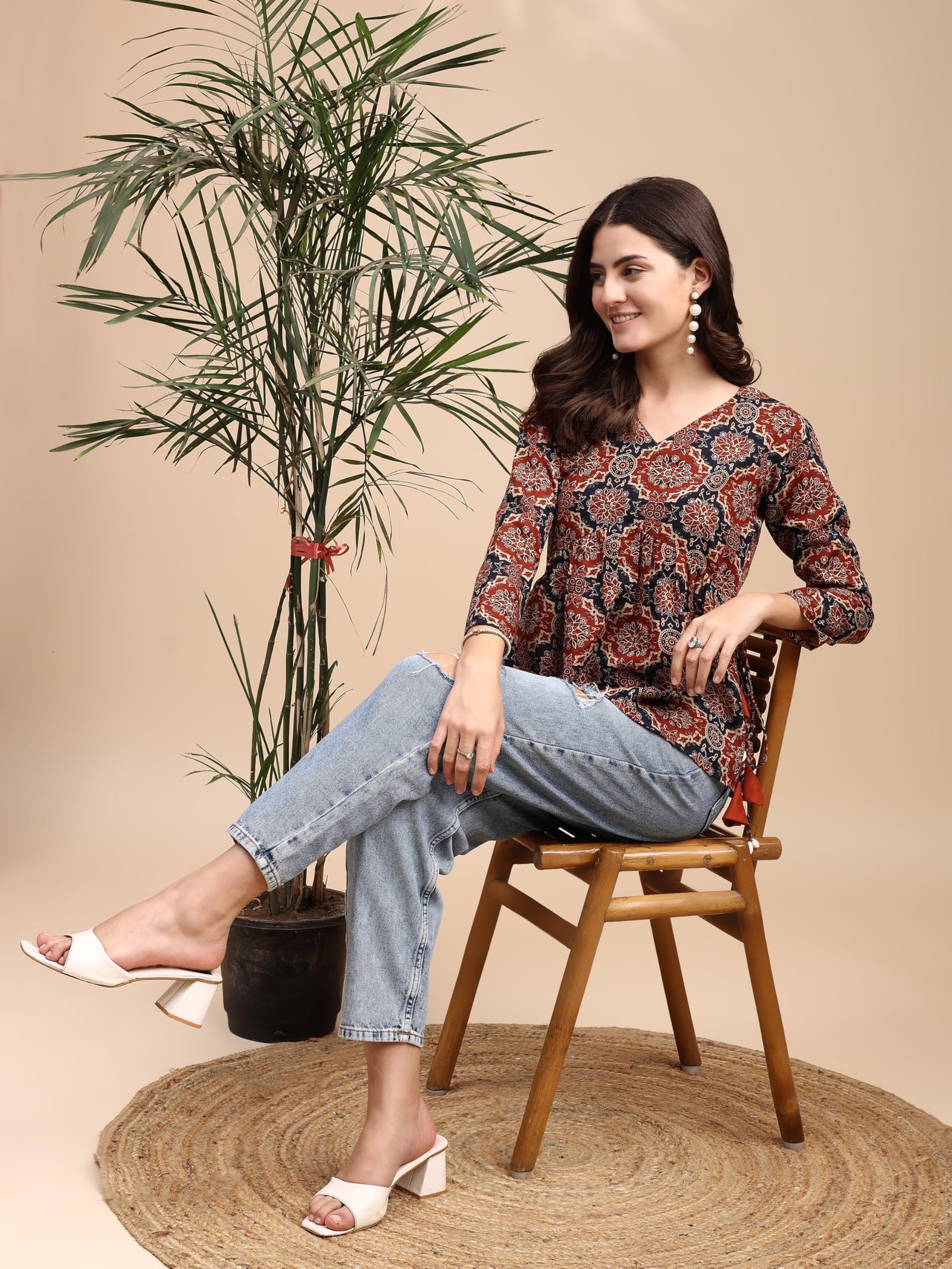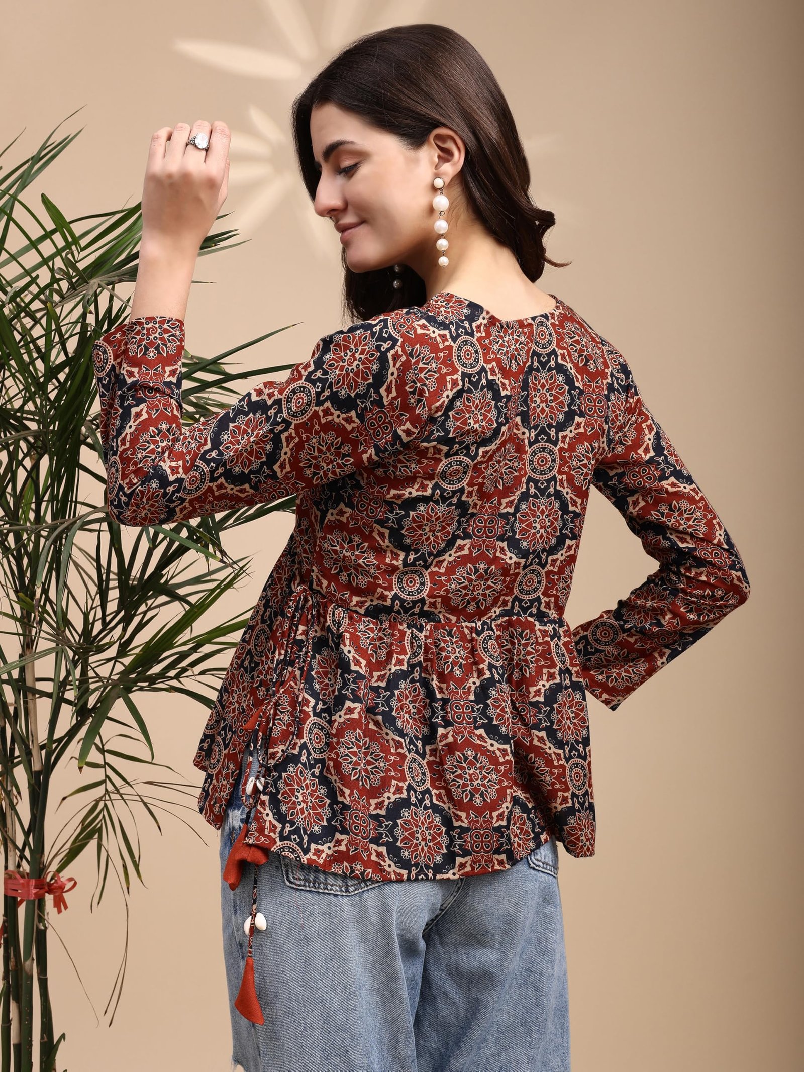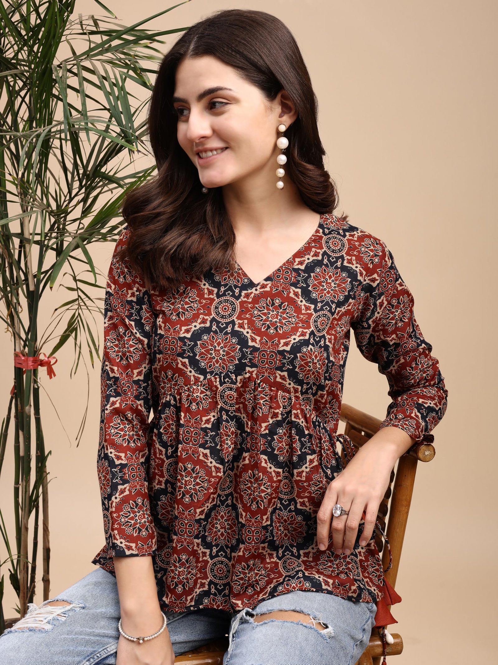<p><b>Brand:</b> Youthnic</p><p><b>Color:</b> Rust</p><p><b>Features:</b> <ul><li>Kurta Fabric : Cotton Blend | Kurta Style : Alia Cut | Kurta Work : Ajrak Print | Kurta Color : Rust</li><li>Style: Alia Cut || Length : Hip Length|| Sleeves: Long Sleeves || Size Chart - 2XL || Across Shoulder( Inches ) - 16 || Bust - 42 || chest - 42 || Front length - 25 || waist - 39 || Hips - 48 || in,For More Please refer to the size Chart below.</li><li>This Supremely soft and comfortable Cotton Blend alia cut Top With Ajrak Print Pattern is perfect for all type of occasions</li><li>Ocassion : Daily wear , Casual Wear , Evening Wear , Office wear , Festival Wear</li><li>Disclaimer : Colour of the actual product may slightly vary due to different photographic lighting sources or your display color settings or screen type. ||Care Instructions: Hand Wash ||</li></ul></p><p><b>Package Dimensions:</b> 25x257x150</p>